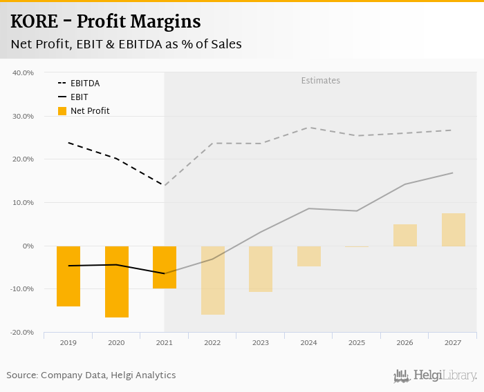 KORE made a net profit of USD -24.5 mil with revenues of USD 248 mil in 2021, up by 30.5% and up by 16.1%, respectively, compared to the previous year.