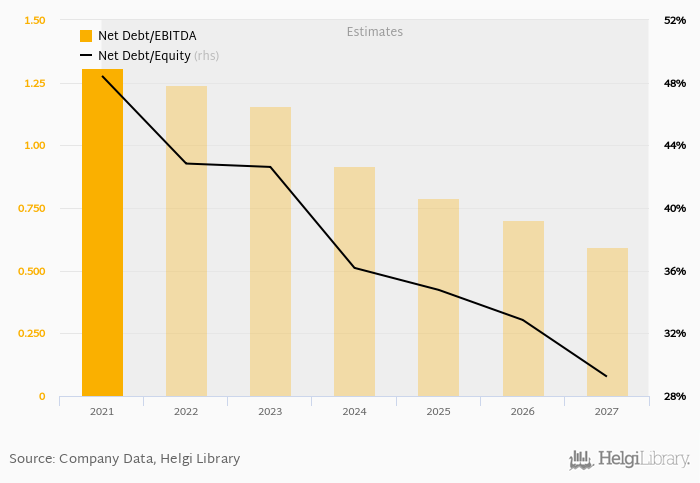 Historically, the firm’s net debt to equity reached a high of 48.4% in 2021 and a low of 48.4% in 2021 between 2021 and 2021. The average for the last five years was 48.4%.