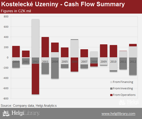 The Company is one of few loss-making companies within the Agrofert portfolio. In 2012, Kostelecke made a loss of CZK 102 mil extending the cumulative losses to CZK 602 mil for the last decade.