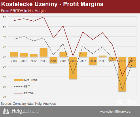 The Company is one of few loss-making companies within the Agrofert portfolio. In 2012, Kostelecke made a loss of CZK 102 mil extending the cumulative losses to CZK 602 mil for the last decade.