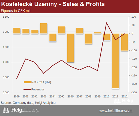 The Company is one of few loss-making companies within the Agrofert portfolio. In 2012, Kostelecke made a loss of CZK 102 mil extending the cumulative losses to CZK 602 mil for the last decade.