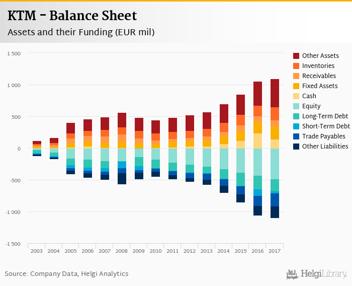KTM's total assets reached EUR 1,092 mil at the end of 2017, up 3.35% compared to the previous year.