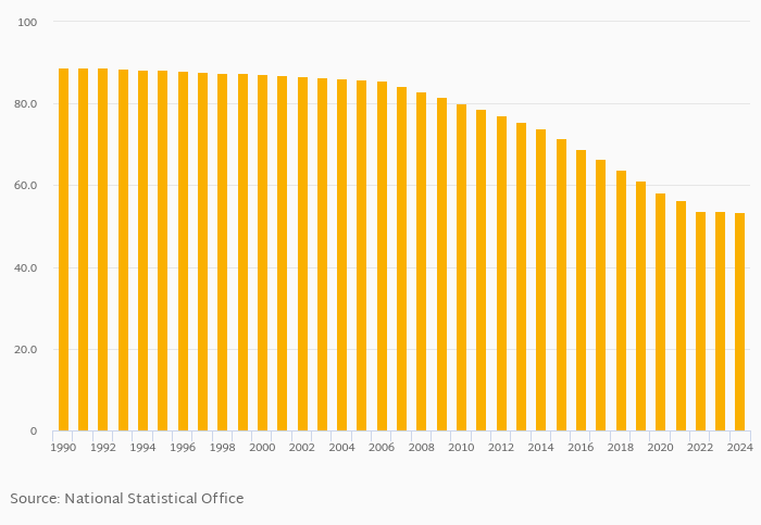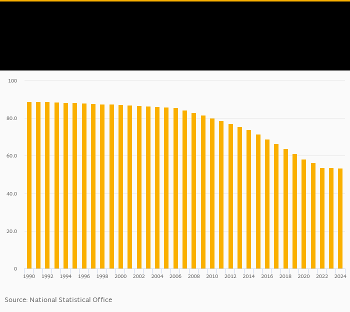 | Ghana | % | 69.8% | 68.5% | 66.8% | 65.9% | 65.1% | ||||||||||||||||