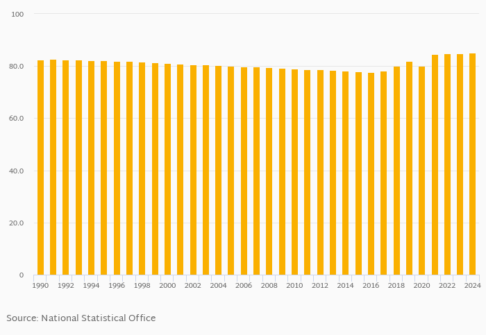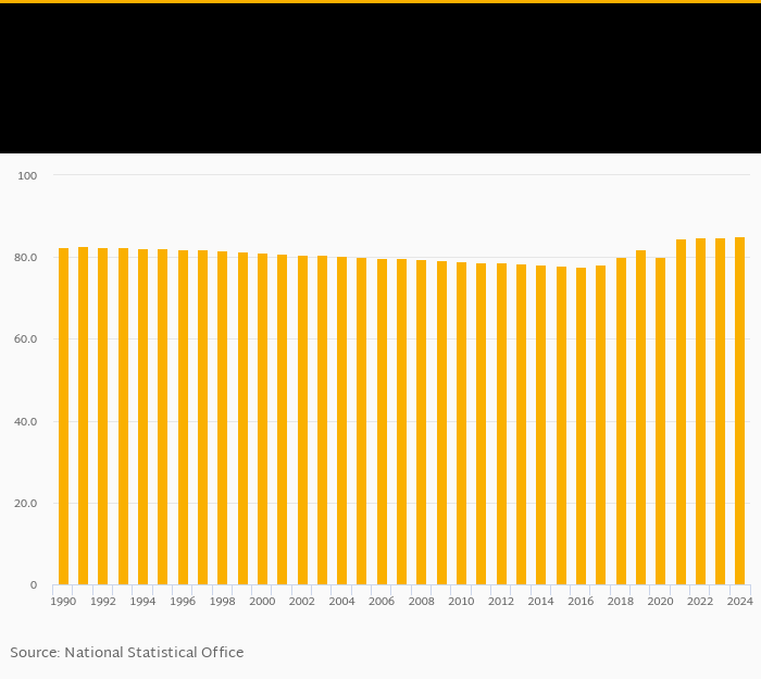 | Bolivia | % | 80.0% | 82.0% | 80.1% | 84.6% | 84.9% | ||||||||||||||||
