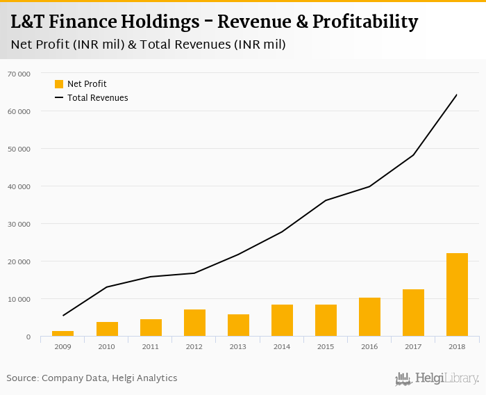 L&T Finance Holdings made a net profit of INR 22,263 mil under revenues of INR 64,339 mil in 2018, up 77.4% and 33.6% respectively compared to the previous year.