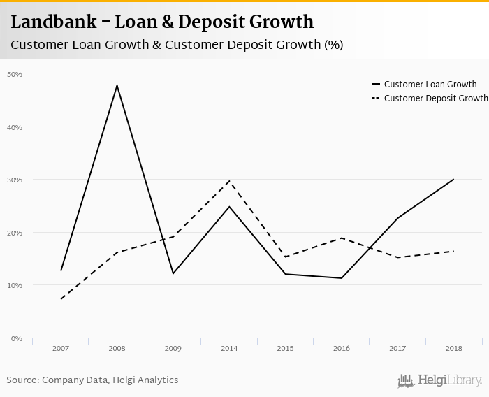 At the end of 2018, Landbank's loans accounted for 47.7% of total deposits and 42.3% of total assets.