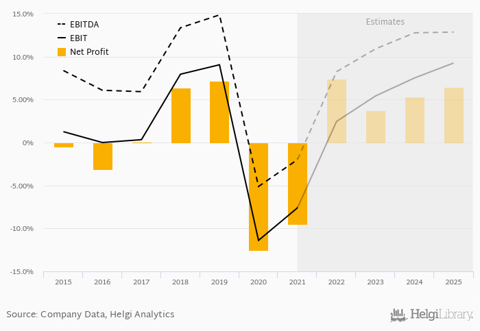 On the operating level, the EBITDA margin reached -1.99% and EBIT amounted to -7.60% of sales in 2021.
