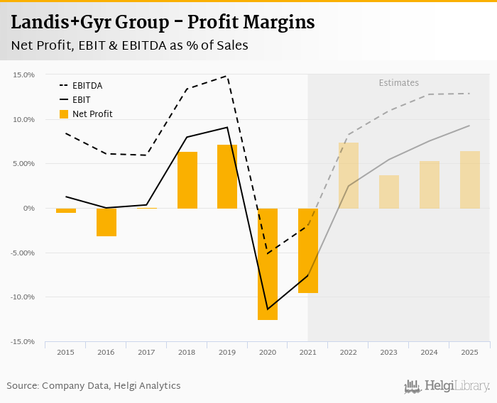 Landis+Gyr Group made a net profit of USD -138 mil with revenues of USD 1,449 mil in 2021, up by 21.7% and up by 2.90%, respectively, compared to the previous year.