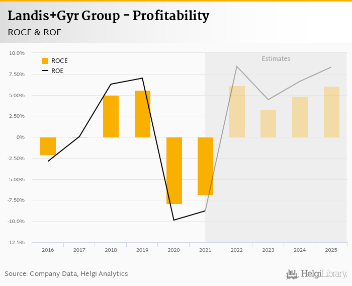 Landis+Gyr Group made a net profit of USD -138 mil in 2021, up 21.7% compared to the previous year. Historically, between 2015 and 2021, the company's net profit reached a high of USD 124 mil in 2019 and a low of USD -176 mil in 2020.