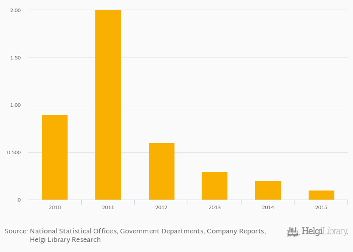Lead (mine) production fell 50.0% to 0.100 kt in Pakistan in 2015, according to the National Statistical Office.