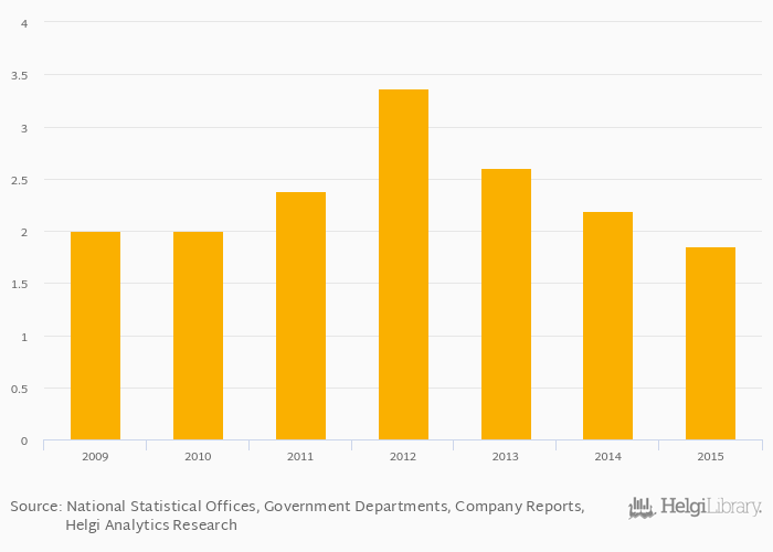 Historically, lead (refined) production in Senegal reached an all time high of 3.37 kt in 2012 and an all time low of 1.86 kt in 2015.