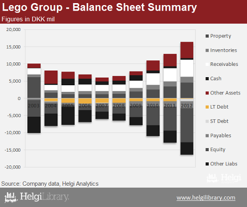 From losing nearly DKK 1.6 bil in 2004, or a third of the previous year's equity, The Lego Group has made an incredible recovery. In 2012, the privately held manufacturer of toys based in Billund, Denmark made a net profit of nearly DKK 5.6 bil. Compared to the year 2004, Company's sales have increased 3.5-fold to DKK 23.4 bil while average ROE reached 73% in 2010-2012. That's without any debt, of course...