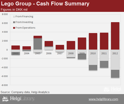 From losing nearly DKK 1.6 bil in 2004, or a third of the previous year's equity, The Lego Group has made an incredible recovery. In 2012, the privately held manufacturer of toys based in Billund, Denmark made a net profit of nearly DKK 5.6 bil. Compared to the year 2004, Company's sales have increased 3.5-fold to DKK 23.4 bil while average ROE reached 73% in 2010-2012. That's without any debt, of course...