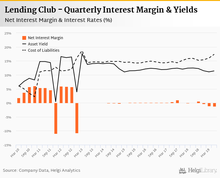 Lending Club's net interest margin amounted to -1.27% in the second quarter of 2019, down from -1.10% when compared to the previous quarter.