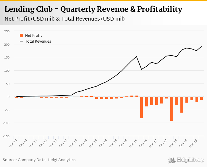 Lending Club made a net profit of USD -10.7 mil under revenues of USD 191 mil in the second quarter of 2019, up 82.5% and 7.81% respectively when compared to the same period last year.