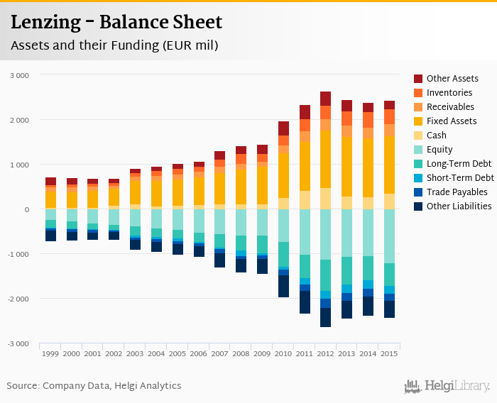 Lenzing's total assets reached EUR 2,422 mil at the end of 2015, up 1.97% compared to the previous year.