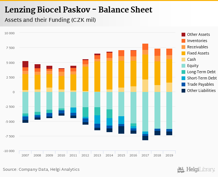 Lenzing Biocel Paskov's total assets reached CZK 7,358 mil at the end of 2019, down 0.049% compared to the previous year.