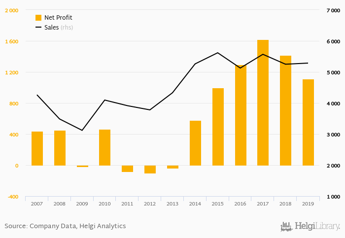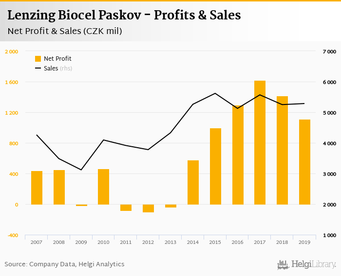Lenzing Biocel Paskov made a net profit of CZK 1,111 mil in 2019, down 21.6% compared to the previous year. Total sales reached CZK 5,285 mil, which is up 0.683% when compared to the previous year.