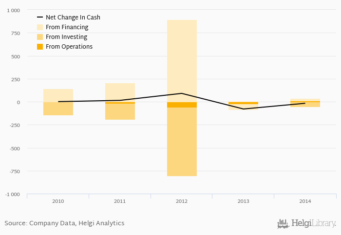Cash from financing amounted to CZK 25.0 mil, so the company generated CZK -17.3 mil net cash in 2014.