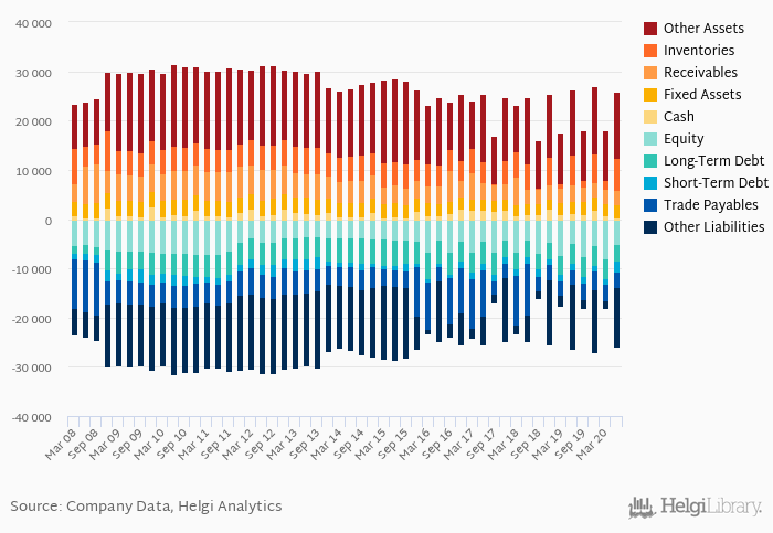 Current assets amounted to EUR 13,761 mil, or 53.2% of total assets while cash stood at EUR 429 mil at the end of 2Q2020.