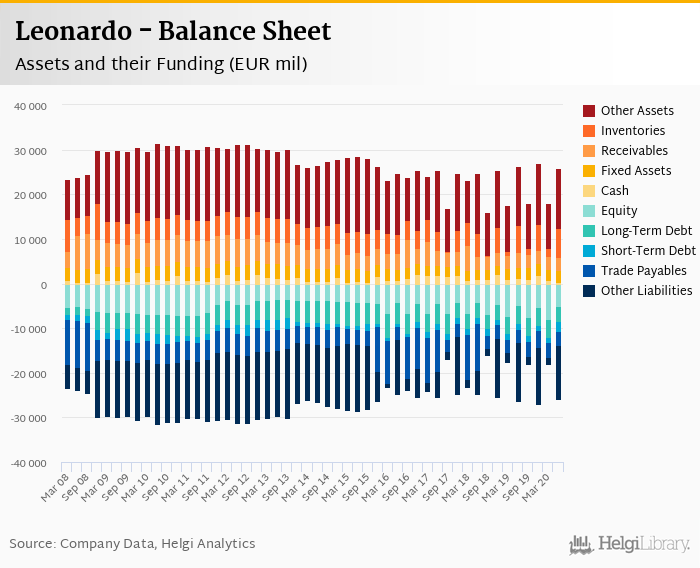 Leonardo's total assets reached EUR 25,881 mil at the end of 2Q2020, down 1.8% compared to the previous year.