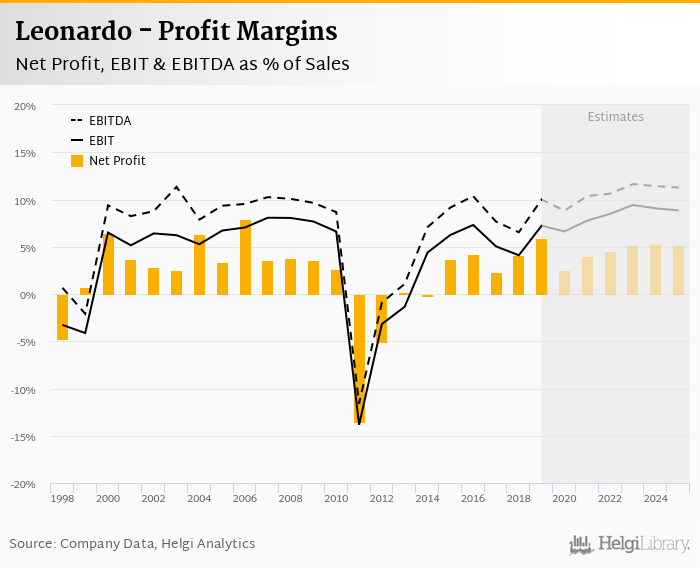 Leonardo made a net profit of EUR 821 mil with revenues of EUR 13,784 mil in 2019, up by 61.3% and up by 12.6%, respectively, compared to the previous year.
