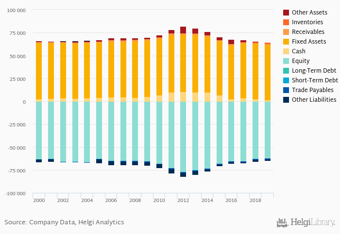 Net debt against equity is up 15.1 pp from five years ago (-17.9%). The ratio against EBITDA increased from -1.56x seen in 2014 to 30.7x.
