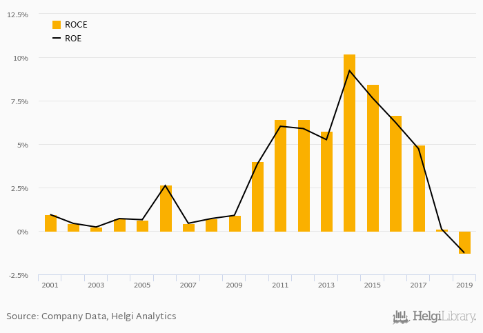 The result implies a return on equity of -1.27% and a return on invested capital of -1.28% in 2019. That is compared to an average of 3.50% and 3.78% over the last five years.
