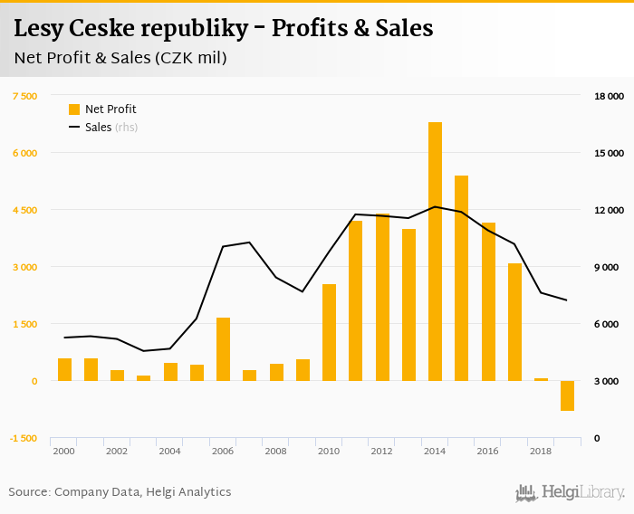 Lesy Ceske republiky made a net profit of CZK -788 mil in 2019, down 1% compared to the previous year. Total sales reached CZK 7,195 mil, which is down 5.28% when compared to the previous year.