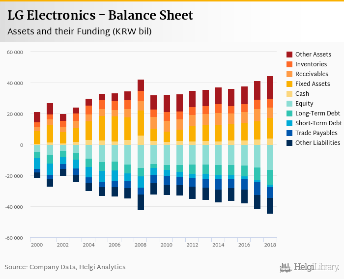 LG Electronics's total assets reached KRW 44,328 bil at the end of 2018, up 7.54% compared to the previous year.