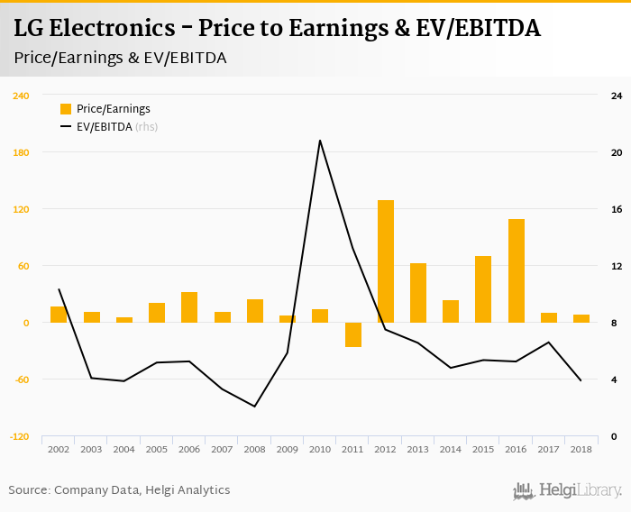 LG Electronics stock traded at USD 62,300 per share at the end 2018 translating into a market capitalization of USD 9,095 mil.