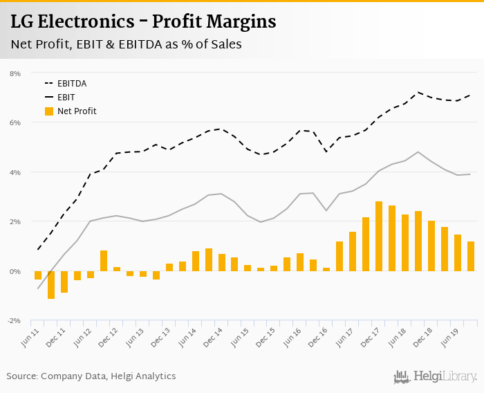 LG Electronics made a net profit of KRW 244 bil with revenues of KRW 15,701 bil in 3Q2019, down by 40.5% and up by 1.77%, respectively, compared to the previous year.