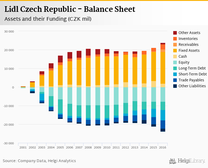 Lidl Czech Republic's total assets reached CZK 23,781 mil at the end of 2016, up 12.6% compared to the previous year.