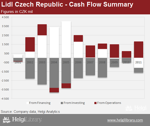 Since its entrance to the Czech Republic in 2003, Lidl has increased its sales more than 6-fold to over CZK 23 bil in 2011. From heavy losses exceeding CZK billion in 2003-2004, the Company has achieved a net profit of nearly 1.2 bil with ROE of 12.5% in 2011.