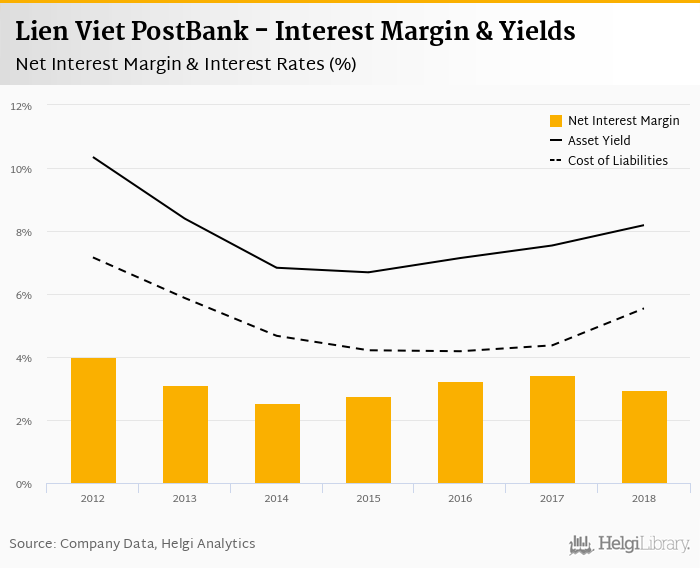 Lien Viet PostBank's net interest margin amounted to 2.96% in 2018, down from 3.42% compared to the previous year.