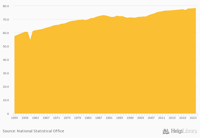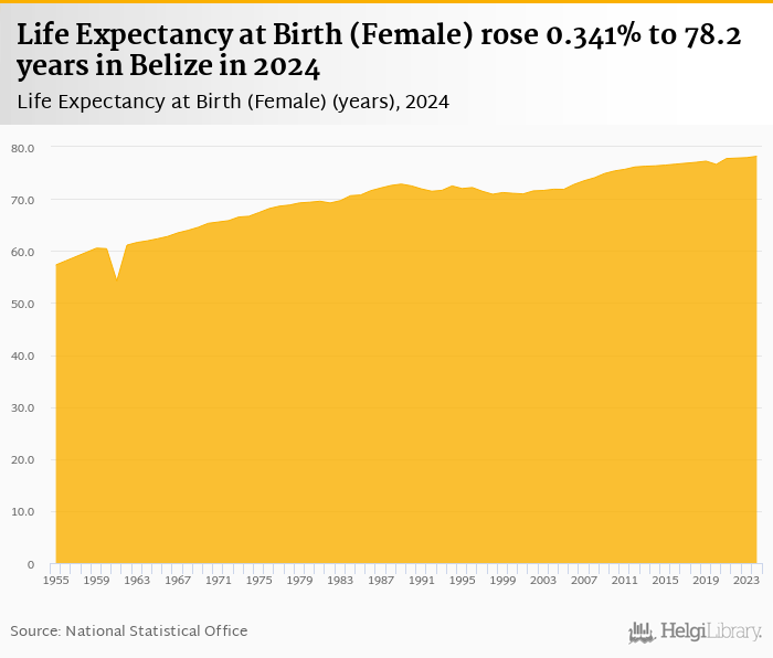 Life expectancy for females rose 0.341% to 78.2 years in Belize in 2024, according to the National Statistical Office.