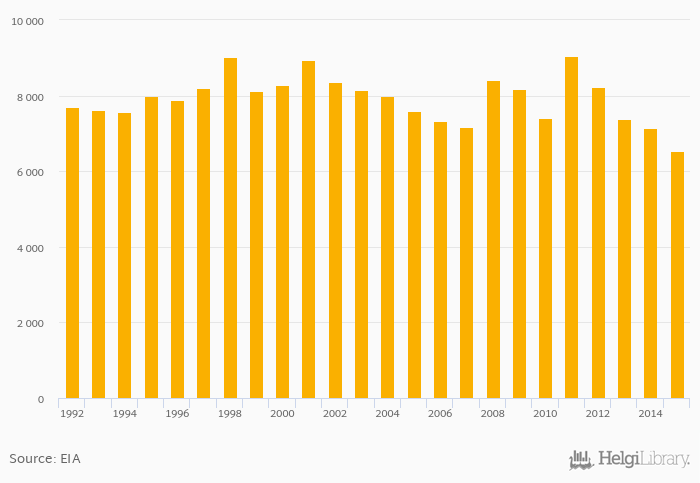 | Lignite Coal Production | Unit | 1995 | 1996 | 1997 | 1998 | 1999 | 2000 | 2001 | 2002 | 2003 | 2004 | 2005 | 2006 | 2007 | 2008 | 2009 | 2010 | 2011 | 2012 | 2013 | 2014 | 2015 |