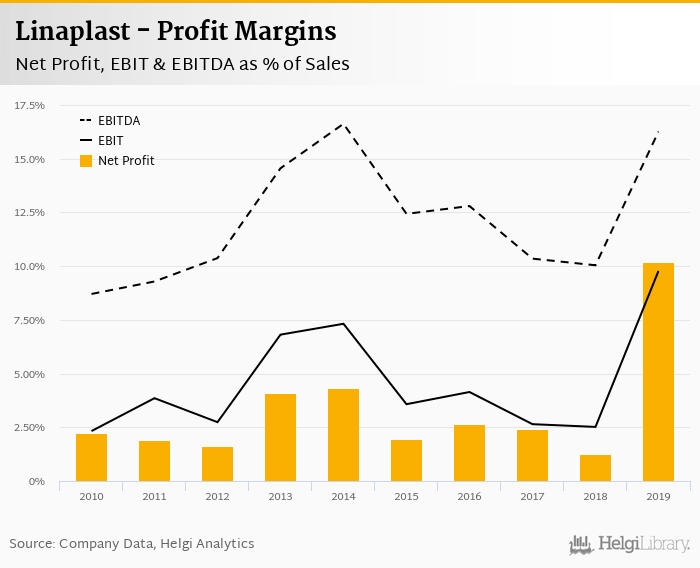 Linaplast made a net profit of CZK 61.9 mil with revenues of CZK 607 mil in 2019, up by 799% and up by 8.82%, respectively, compared to the previous year.