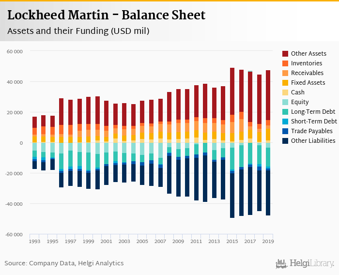 Lockheed Martin's total assets reached USD 47,528 mil at the end of 2019, up 5.91% compared to the previous year.
