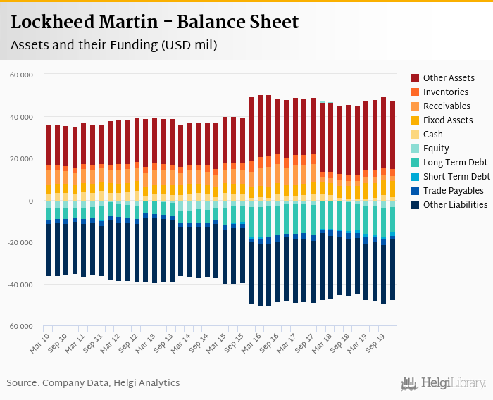 Lockheed Martin's total assets reached USD 47,528 mil at the end of 4Q2019, up 5.91% compared to the previous year.