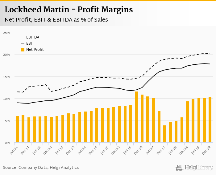 Lockheed Martin made a net profit of USD 1,498 mil with revenues of USD 15,878 mil in 4Q2019, up by 19.6% and up by 10.2%, respectively, compared to the previous year.