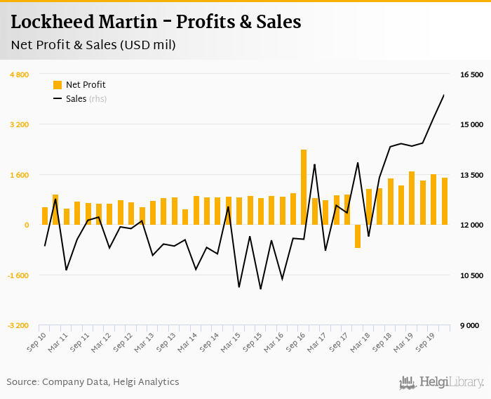 Lockheed Martin made a net profit of USD 1,498 mil in 4Q2019, up 19.6% compared to the previous year. Total sales reached USD 15,878 mil, which is up 10.2% when compared to the previous year.