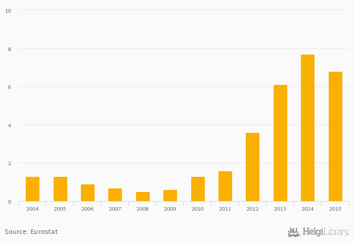 Long-Term Unemployed (As % of Active Population) fell 11.7% to 6.80% in Cyprus in 2015, according to Eurostat.