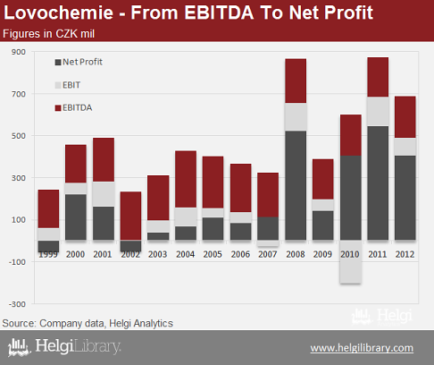 Lovochemie is a Czech company, which produces mineral fertilizers, especially ammonium nitrate and calcium nitrate. In 2012, the Company reached sales of CZK 5.75 bil with a net profit of over CZK 400 mil. In the last five years, profitability of the Company improved significantly (with average ROE of 17.5% in 2008-2012) and the Company repaid all its debts
