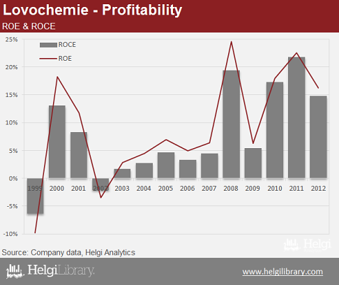 Lovochemie is a Czech company, which produces mineral fertilizers, especially ammonium nitrate and calcium nitrate. In 2012, the Company reached sales of CZK 5.75 bil with a net profit of over CZK 400 mil. In the last five years, profitability of the Company improved significantly (with average ROE of 17.5% in 2008-2012) and the Company repaid all its debts