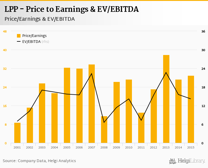 LPP stock traded at EUR 5,555 per share at the end 2015 translating into a market capitalization of USD 2,606 mil.