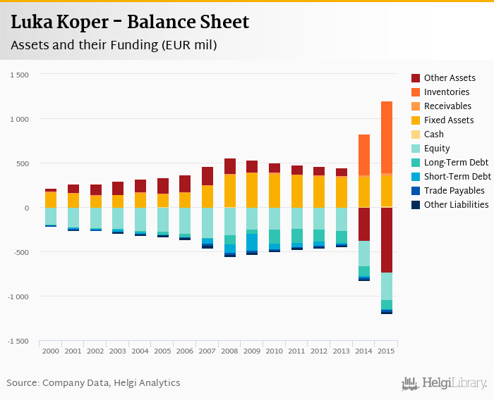 Luka Koper's total assets reached EUR 467 mil at the end of 2015, up 3.18% compared to the previous year.