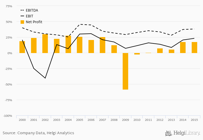 On the operating level, the EBITDA margin reached 38.0% and EBIT amounted to 23.0% of sales in 2015.