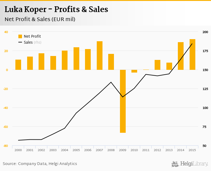 Luka Koper made a net profit of EUR 32.4 mil in 2015, up 11.4% compared to the previous year. Total sales reached EUR 184 mil, which is up 12.6% when compared to the previous year.