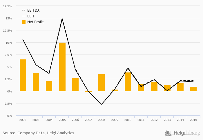 On the operating level, the EBITDA margin reached 2.15% and EBIT amounted to 1.89% of sales in 2015.